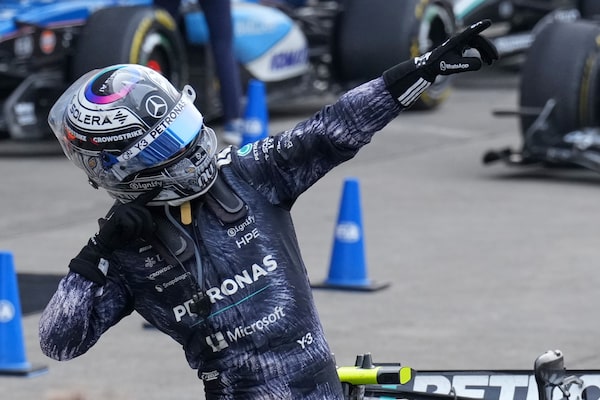 Mercedes driver Kimi Antonelli of Italy reacts after winning the Japanese Formula One Grand Prix on Sunday.Hiro Komae/The Associated Press