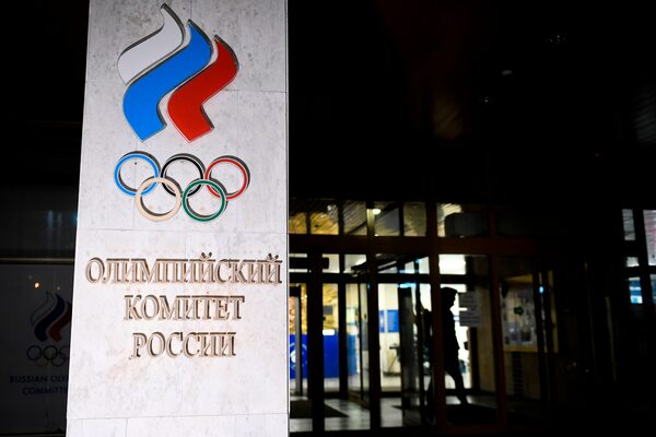 A person walks out of the Russian Olympic Committee (ROC) headquarters in Moscow on December 9, 2019. Russia will miss next year's Tokyo Olympics and the 2022 Beijing Winter Games.ALEXANDER NEMENOV/AFP/Getty Images