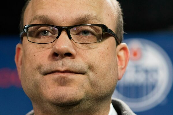 In this Nov. 4, 2015, file photo, Edmonton Oilers general manager Peter Chiarelli gives an update on injured Oilers hockey player Connor McDavid in Edmonton, Alta. This past week, fans and media turned on Oilers general manager Peter Chiarelli, blaming dreadful trades and bad contracts for the fact that the team is entering the all-star break five spots short of the final wild-card position for the playoffs.AMBER BRACKEN/The Associated Press