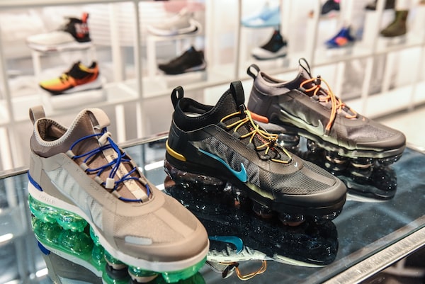 Nike sneakers are seen on display at the Nike flagship store on 5th Ave. on Dec. 20, 2019 in New York City.Stephanie Keith/Getty Images