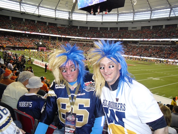 Winnipeg Blue Bomber superfan Martin Shaff (left) with friend Jay Diamond at the 2011 Grey Cup.