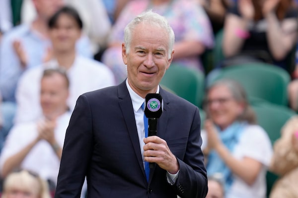 Former tennis player John McEnroe speaks during a 100 years of Centre Court celebration on day seven of the Wimbledon tennis championships in London on July 3.Kirsty Wigglesworth/The Associated Press