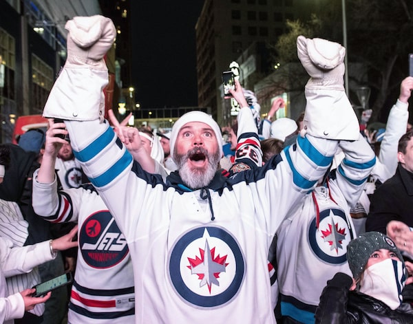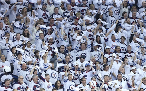 Winnipeg Jets fans celebrate Wednesday's win over the Wild.Mike Sudoma/The Canadian Press
