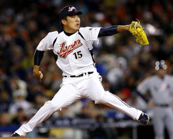 Team Japan's Masahiro Tanaka throws against Team USA in the seventh inning during the semifinal game at the World Baseball Classic in Los Angeles, California March 22, 2009.© Danny Moloshok / Reuters/Reuters
