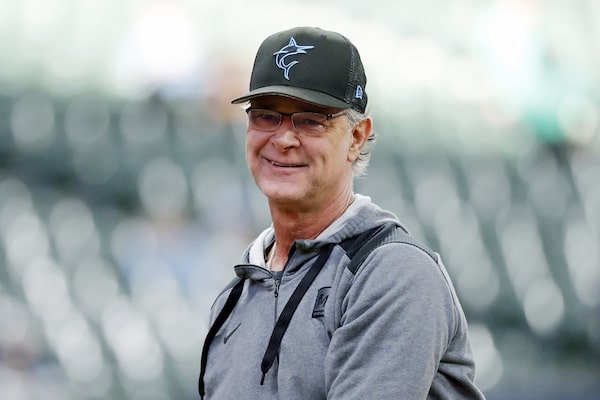 Then-Miami Marlins manager Don Mattingly smiles after throwing a ball to fans before a baseball game against the Milwaukee Brewers on Oct. 1, in Milwaukee.Jon Durr/The Associated Press