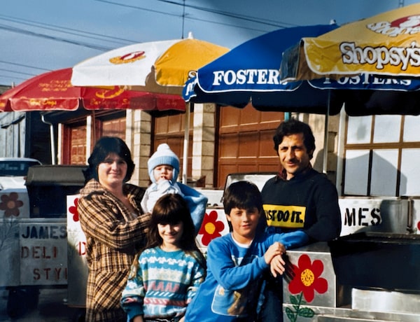 Gus Prokos and his family in 1989. Johnny Prokos, the baby in the photo, is now the owner of the hot dog stand.Supplied