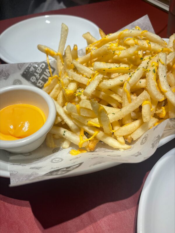 The Fukuoka MLB Cafe is truly a baseball space, in that it celebrates Major League Baseball as a holistic brand. They serve “cheese consommé fries”.The Globe and Mail