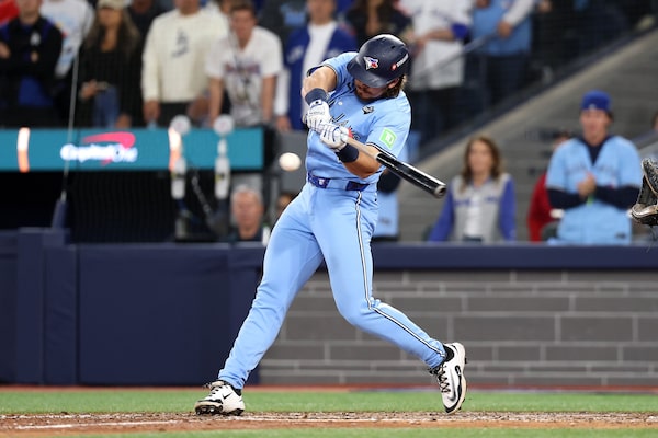Shortstop Bo Bichette is back on the Jays roster for the World Series after a knee injury sidelined him for more than six weeks.Frank Gunn/The Canadian Press