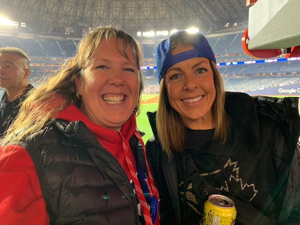 Her friend, Emily MacDonald, is particularly pleased to be watching playoff baseball in October.