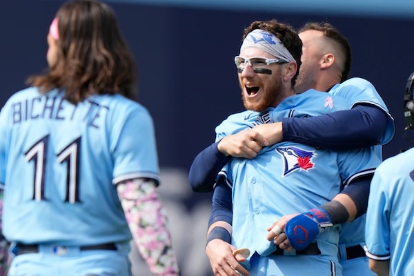 Down 5-4 in the bottom of the ninth – with a fourth-inning home run by former Blue Jay Kevin Pillar separating the sides – the Blue Jays loaded the bases with two out. Clutching a pink bat that was seemingly de rigueur on this special Sunday, Jansen turned on a 93-mile-an-hour sinker from reliever Raisel Iglesias. He drove it through the gap between second and third and into left field toward Pillar, bringing home both Guerrero and Matt Chapman to complete the series sweep of Atlanta by a 6-5 scoreline.
