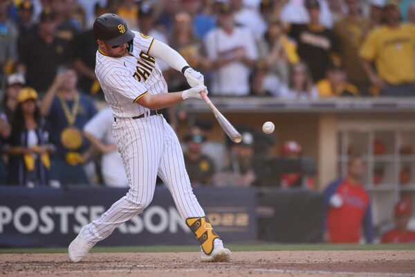 Jake Cronenworth was hit by a pitch to load the bases. With fans on their feet and waving yellow rally towels, Drury singled to put the Padres ahead. Bell capped the really with a single to right. The Padres sent 11 batters to the plate, collecting six hits, a walk and a hit batter.