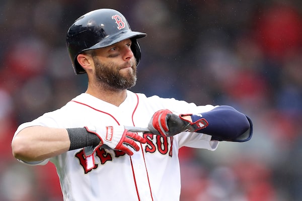 Dustin Pedroia looks on during a game against the Toronto Blue Jays at Fenway Park on April 9, 2019, in Boston.Maddie Meyer/Getty Images