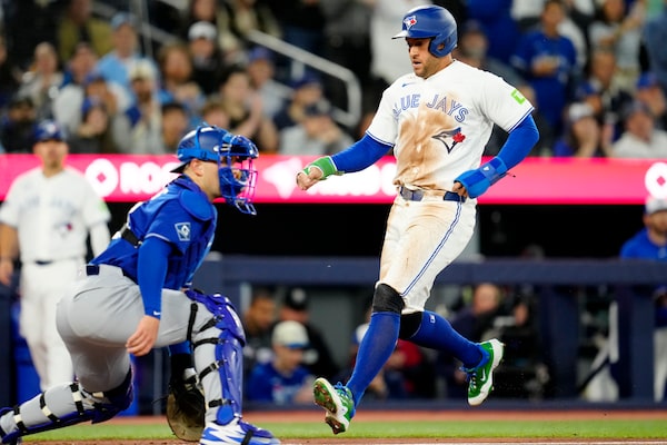 Toronto Blue Jays right fielder George Springer brought some joy to fans on Monday when he crossed home plate in the first inning against the visiting L.A. Dodgers.Frank Gunn/The Canadian Press
