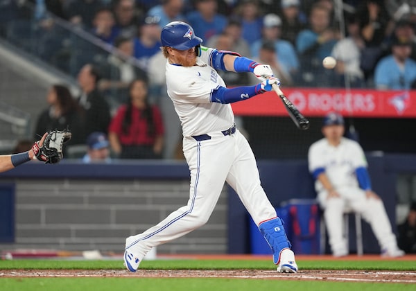 He exemplified his experience in the batter’s box when he nearly knocked a ball over the left-field wall and jogged into second base for a stand-up double in the Jays’ home opener. His wife and mother-in-law cheered alongside the sellout crowd at the new-look Rogers Centre.