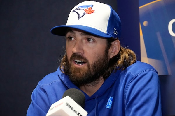 Toronto Blue Jays starting pitcher Kevin Gausman answers questions during media day before Game 1 of the World Series at Rogers Centre on Friday. Gausman is set to take the mound for Game 2 on Saturday.John E. Sokolowski/Reuters