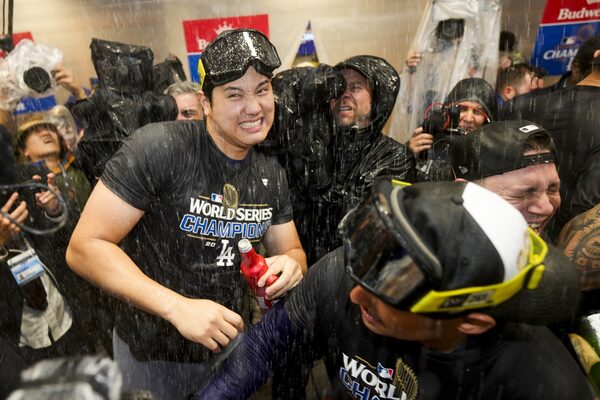 The Los Angeles Dodgers’ first game of the season in South Korea was overshadowed afterward by Shohei Ohtani’s interpreter hinting at his stealing from the Japanese superstar. Their last postgame was a beer and champagne-fueled celebration of the franchise’s eighth World Series title.
