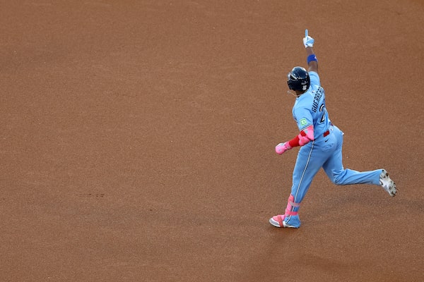 Vladimir Guerrero Jr. runs home after the Jays' second solo home run in three pitches to start Game 5.Patrick Smith/Getty Images
