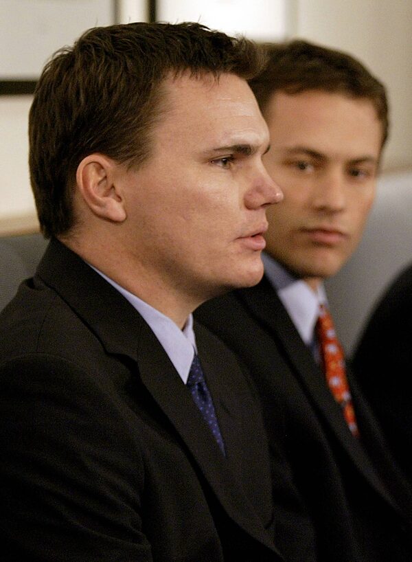 Boston Red Sox co-general manager Jed Hoyer, right, listens as his colleague co-general manager Ben Cherington, left, answers a reporter's question during a news conference at Fenway Park Monday Dec. 12, 2005.STEPHAN SAVOIA/The Associated Press