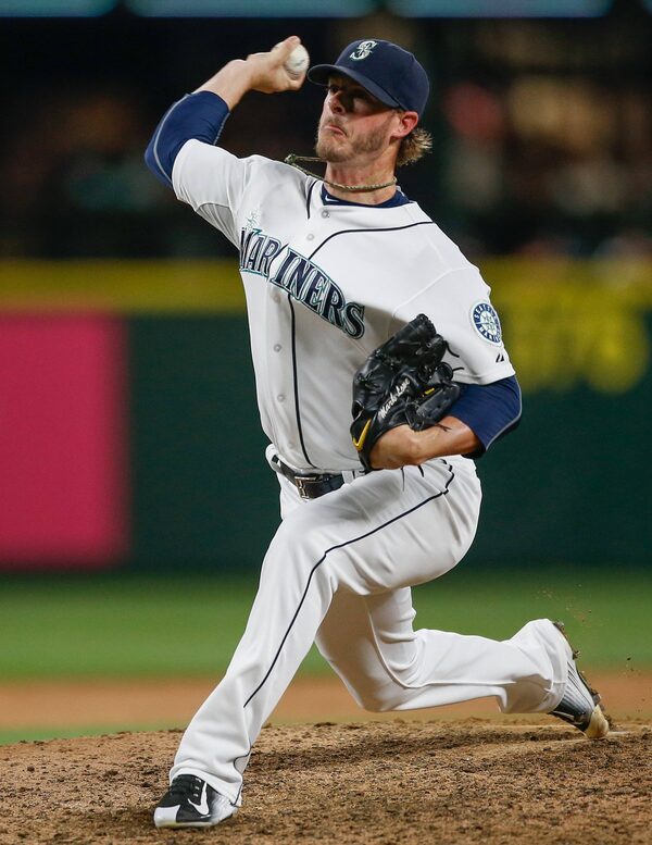 Relief pitcher Mark Lowe of the Seattle Mariners is on his way to TorontoOtto Greule Jr./Getty Images