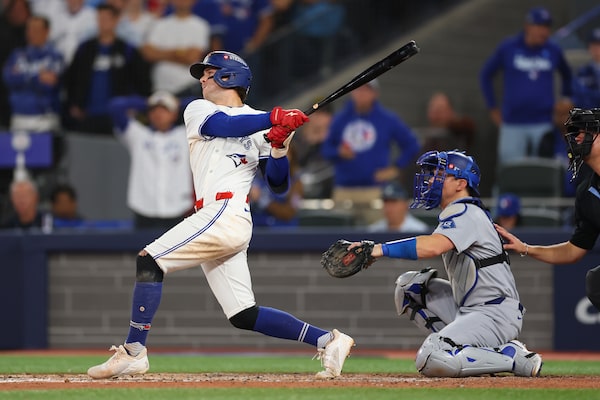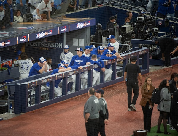 Toronto Blue Jays players lean on the dugout railing after their loss to the LA Dodgers.Fred Lum/The Globe and Mail