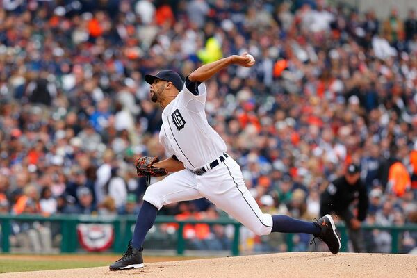 David Price of the Detroit Tigers throws the first pitch during a game against the Minnesota Twins at Comerica Park on April 6, 2015 in Detroit.Leon Halip/Getty Images