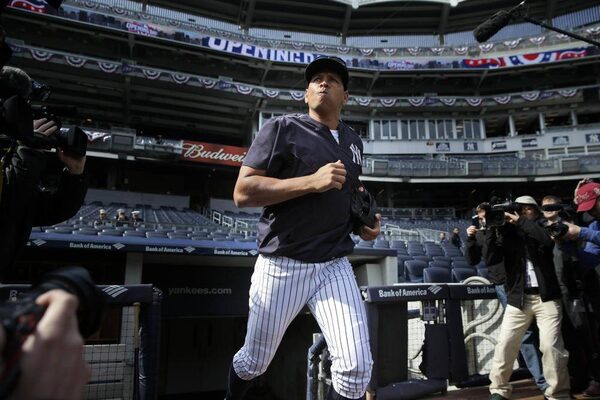 New York Yankees' Alex Rodriguez takes the field for batting practice before the opening day baseball game between the Toronto Blue Jays and the Yankees at Yankee Stadium, Monday, April 6, 2015, in New York.Seth Wenig/The Associated Press