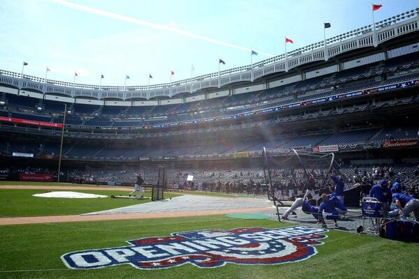 The New York Yankees take batting practice before a game against the Toronto Blue Jays on April 6, 2015 at Yankee Stadium in the Bronx.Elsa/Getty Images