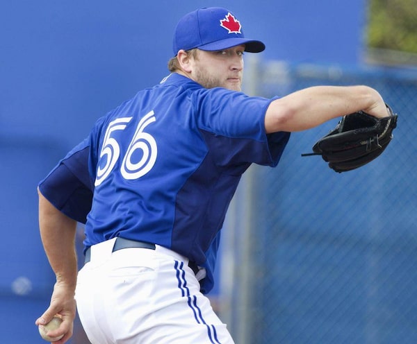 Toronto Blue Jays pitcher Mark Buehrle throws off the practice mound at the team's baseball spring training facility in Dunedin, Florida February 13, 2013.FRED THORNHILL/Reuters