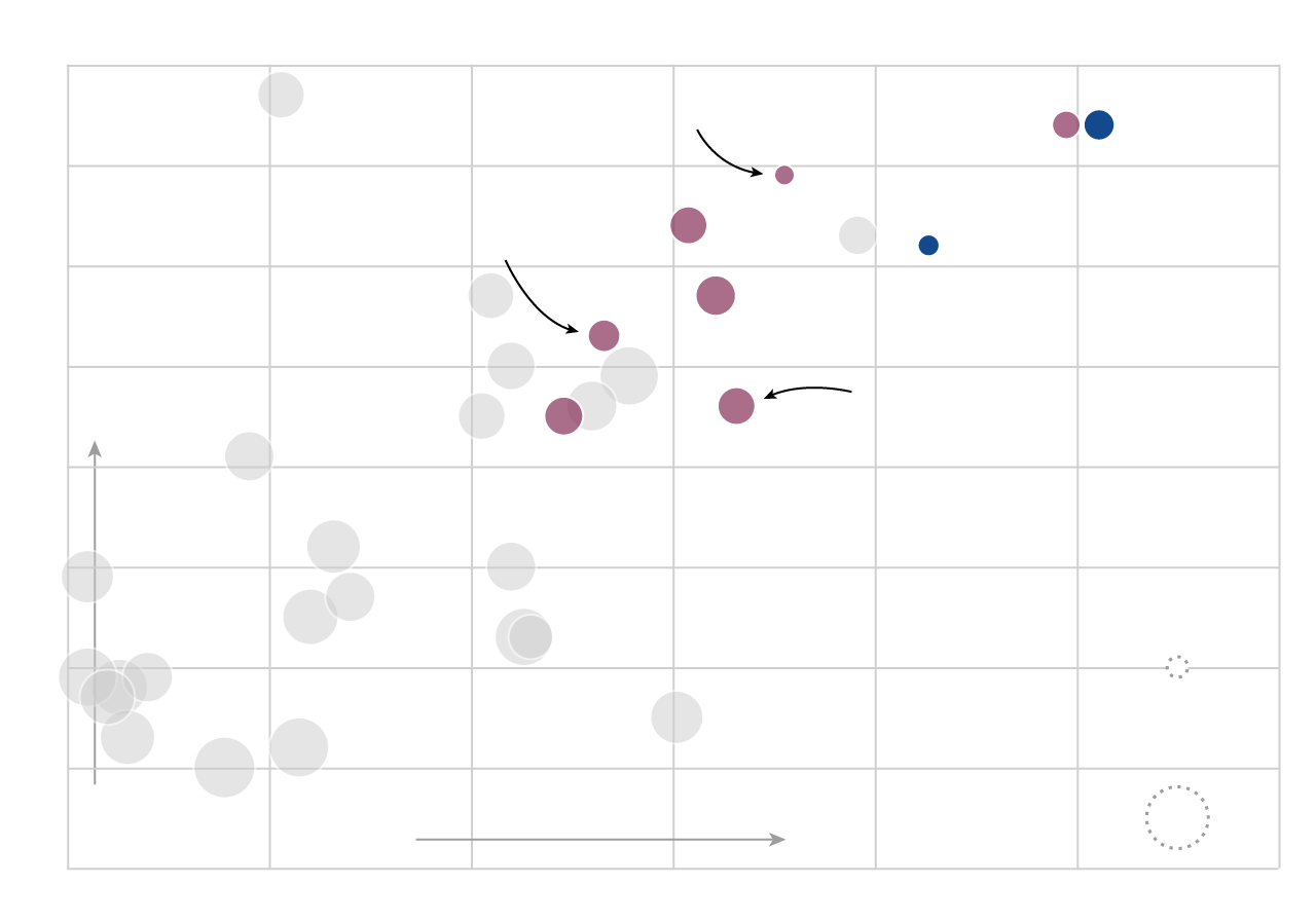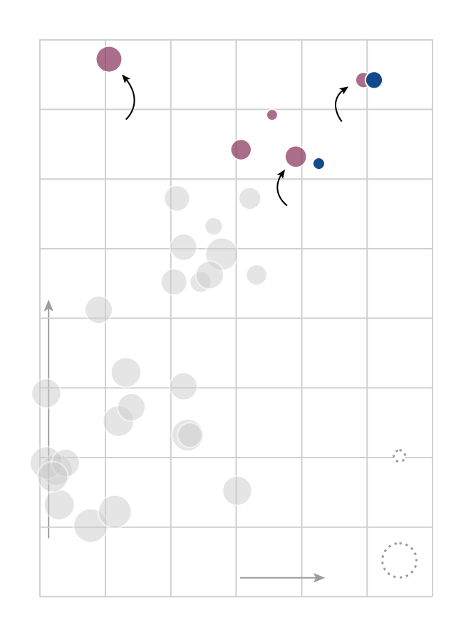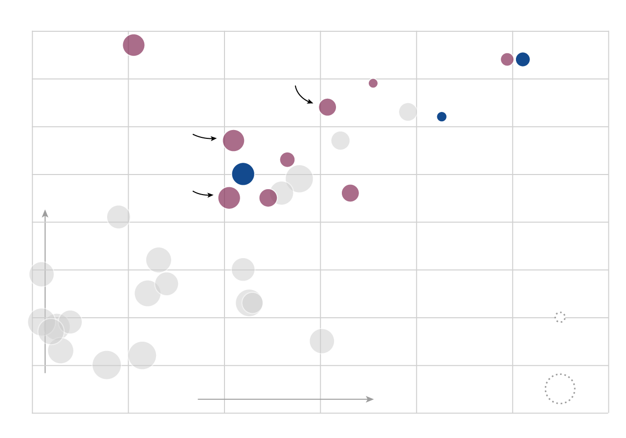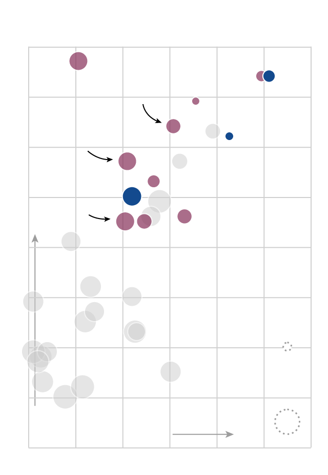 The scatterplot below (hover or tap to reveal player details) charts MLB free agents’ expected market value (or 2016 salary, in cases where Spotrac didn't calculate a value) against their run production in 2016. Better consistency is indicated by a smaller marker, per Bill Petti's VOL metric. Removing defensive considerations, if the Jays are looking to buy runs to replace Encarnacion and Bautista, these are the players they’ll be looking at. (Two of them are already off the market: Kendrys Morales signed with Toronto, and Josh Reddick signed with Houston.)