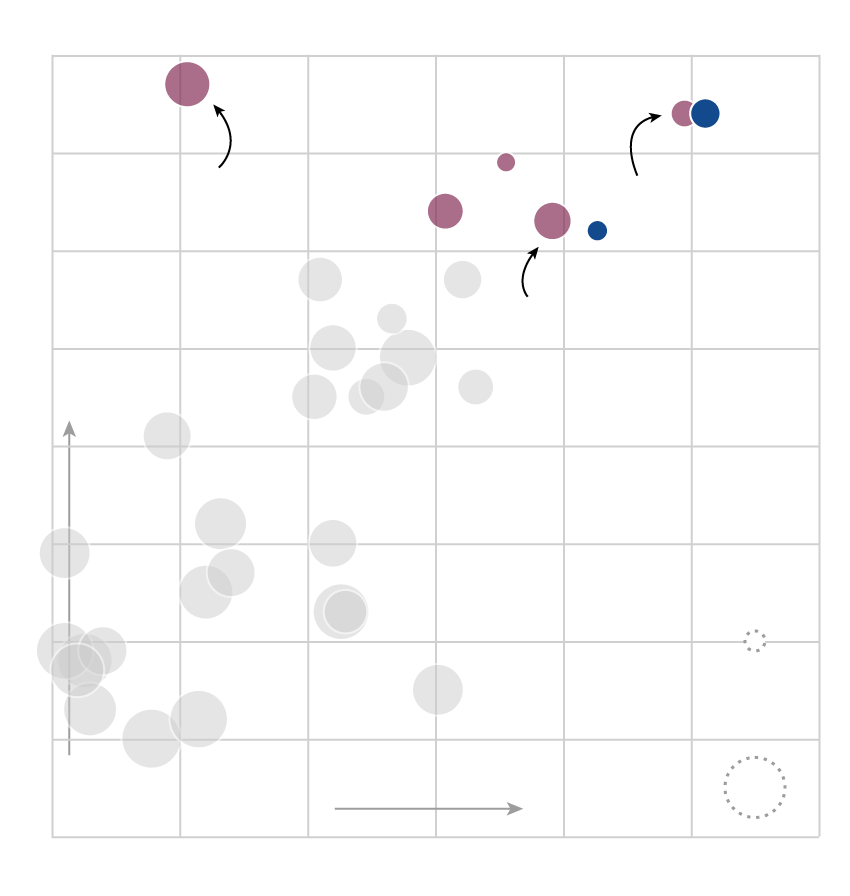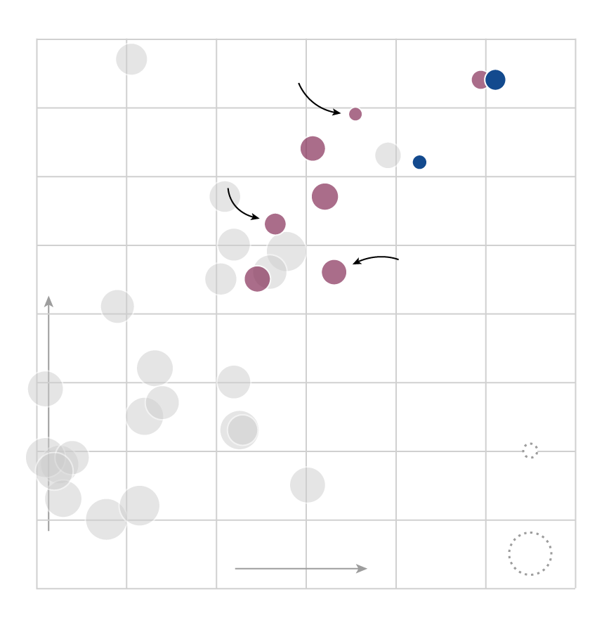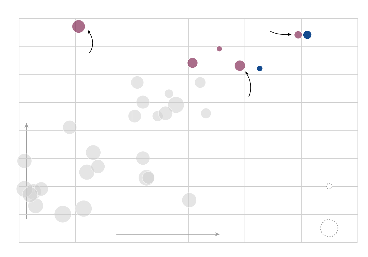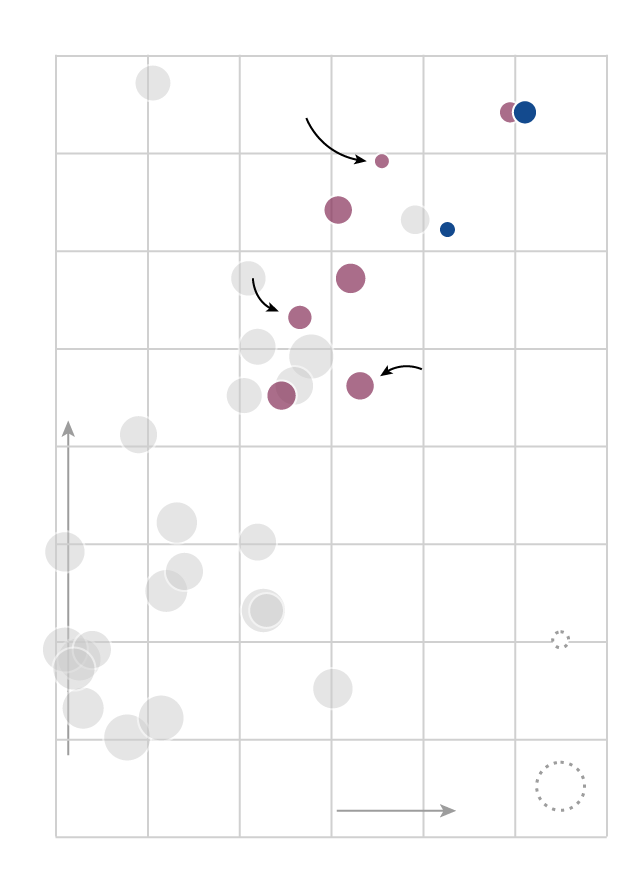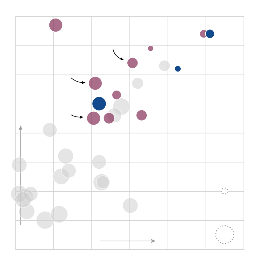 The scatterplot below (hover or tap to reveal player details) charts MLB free agents’ expected market value (or 2016 salary, in cases where Spotrac didn't calculate a value) against their run production in 2016. Better consistency is indicated by a smaller marker, per Bill Petti's VOL metric. Removing defensive considerations, if the Jays are looking to buy runs to replace Encarnacion and Bautista, these are the players they’ll be looking at. (Two of them are already off the market: Kendrys Morales signed with Toronto, and Josh Reddick signed with Houston.)