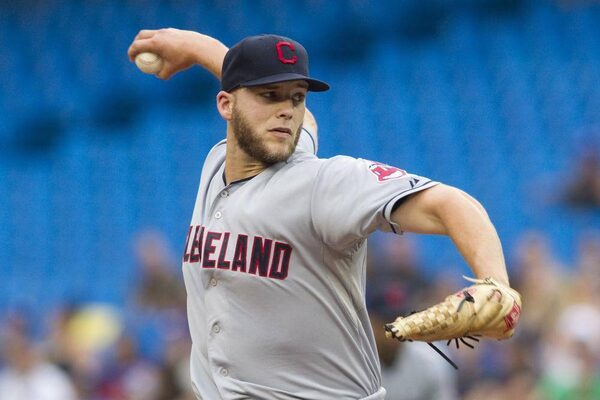 Cleveland Indians starting pitcher Justin Masterson works against Toronto Blue Jays during the first inning of action in Toronto on Friday July 13 , 2012.Chris Young/The Canadian Press