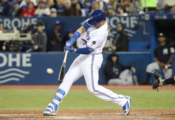 Toronto starter Marcus Stroman was on a pitch count after being hampered by a right shoulder injury at spring training. He laboured through a 21-pitch first inning – walking a pair – before escaping with back-to-back strikeouts.