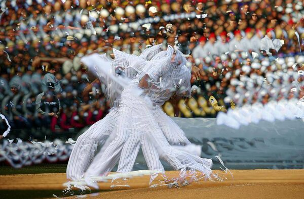 Chicago White Sox starting pitcher Chris Sale is pictured in a multiple exposure pitch against the Kansas City Royals during their MLB American League baseball game in Chicago April 1, 2013. The White Sox won the game 1-0.JEFF HAYNES/Reuters