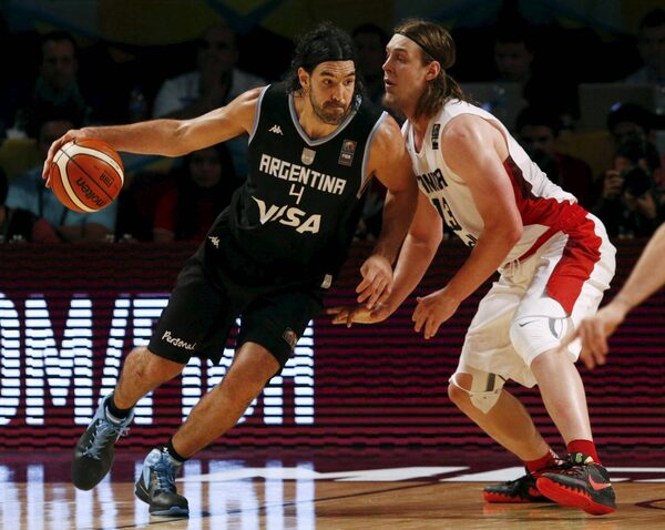Argentina's Luis Scola (L) controls the ball against Canada's Kelly Olynyk during their 2015 FIBA Americas Championship basketball game at the Sport Palace in Mexico City, September 1, 2015.HENRY ROMERO/Reuters
