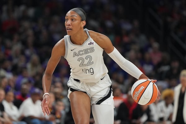 Las Vegas Aces centre A'ja Wilson (22) dribbles against the Phoenix Mercury during Game 4 of the 2025 WNBA finals in Phoenix.Rick Scuteri/The Associated Press