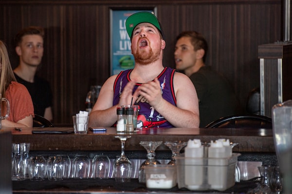 Garrin Bulani watches Game 4 at the Canadian Brewhouse during the 'JurasSak Park' viewing party in Saskatoon on June 7, 2019.Liam Richards/The Globe and Mail
