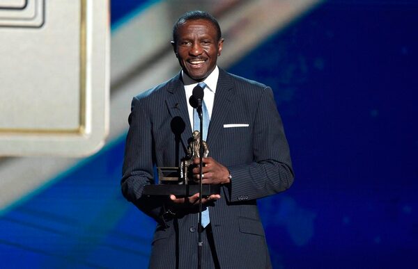 Dwane Casey, current head coach of the Detroit Pistons, accepts the Coach of the Year award for his work with the Toronto Raptors during the NBA Awards at the Barker Hangar, in Santa Monica, Calif., on June 25, 2018.Chris Pizzello/The Canadian Press