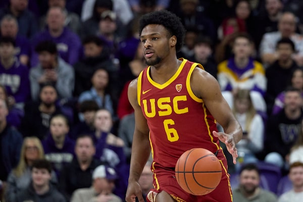 USC Trojans guard Bronny James during a game against Washington, in Seattle, on March 2.John Froschauer/The Associated Press