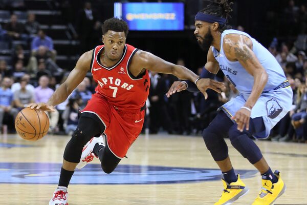 Toronto Raptors guard Kyle Lowry drives against Memphis Grizzlies guard Mike Conley in the first half of a game at FedExForum, in Memphis, Tenn., on Nov. 27, 2018.Nelson Chenault/USA TODAY Sports via Reuters