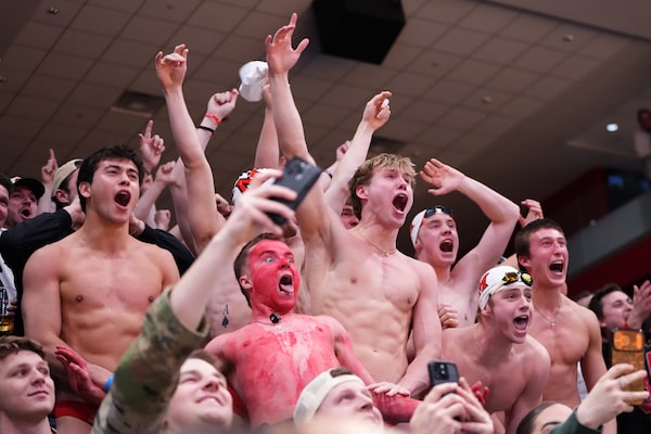 Pugh thought it would be fun to find a way to throw some colourful support behind the basketball team, in the spirit of Duke’s Cameron Crazies. His suggestion in the team group chat eventually led to the swimmers attending their first home game in January.