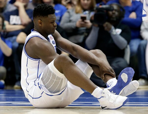 Zion Williamson, a 6-foot-7 freshman forward for the Duke Blue Devils who is anticipated to be the top 2019 NBA Draft pick, suffered a mild sprain to his right knee because of the incident, according to his coach Mike Krzyzewski.
