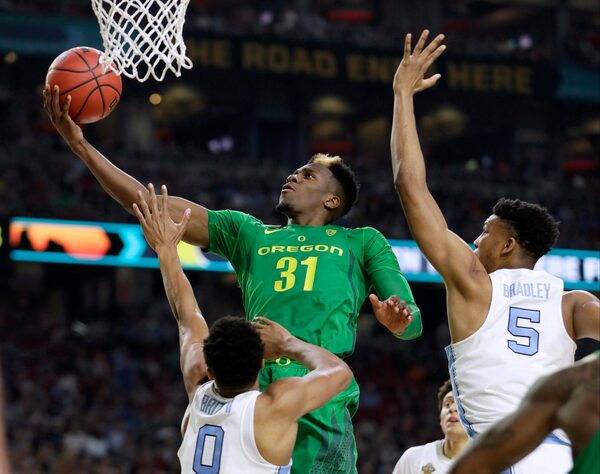 Dylan Ennis drives to the basket while playing with the University of Oregon on April 1, 2017. Ennis now plays in Spain.Mark Humphrey/The Associated Press