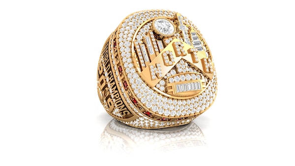 During a pregame ceremony to open the new season on Tuesday, the Raptors received eye-popping gold rings, bursting with diamonds. The face features the Larry O’Brien championship trophy, Toronto’s skyline and the team’s home, Scotiabank Arena. A gold-plated, diamond-studded NORTH centres the ring, a nod to the red chevron jersey they wore the night they hoisted the trophy in June.