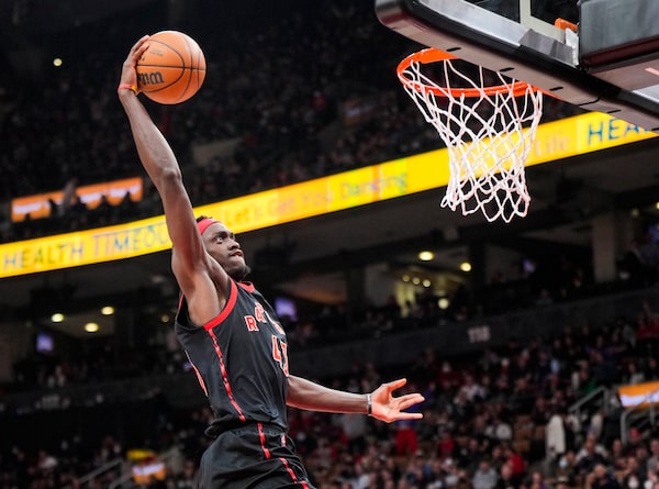 Pascal Siakam goes up for a dunk against the Houston Rockets at the Scotiabank Arena on April 8.Mark Blinch/Getty Images