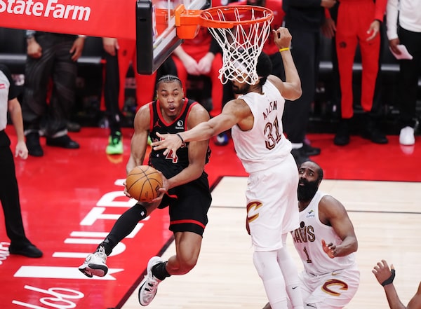 On Thursday, Scottie Barnes became the first Raptor to record a 30-point, 10-assist and five-rebound game in the playoffs.Nathan Denette/The Canadian Press