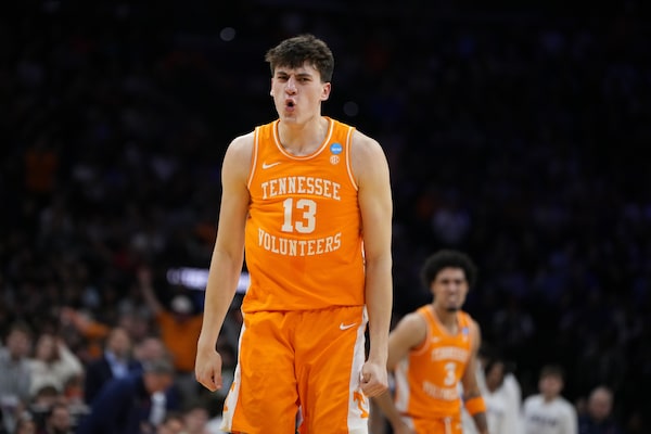 Tennessee's J.P. Estrella reacts after a basket during the second half against Virginia in the second round of the NCAA college basketball tournament on Sunday in Philadelphia.Matt Slocum/The Associated Press