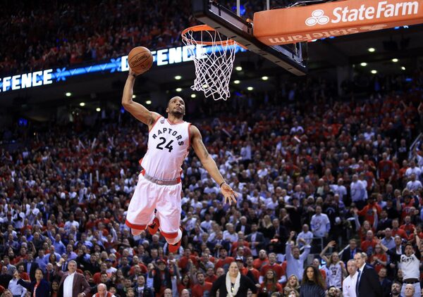 Norman Powell #24 of the Toronto Raptors dunks the ball late in the second half of Game Five of the Eastern Conference Quarterfinals against the Indiana Pacers during the 2016 NBA Playoffs at the Air Canada Centre on April 26, 2016 in Toronto, Ontario, Canada.Vaughn Ridley/Getty Images