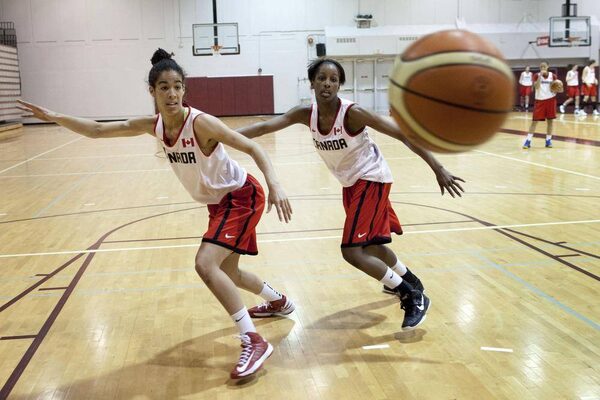 Point guard Kia Nurse (left) of the Canadian women’s national basketball team during a practice at the David Braley Centre on the McMaster University campus in Hamilton May 17, 2013.Moe Doiron/The Globe and Mail