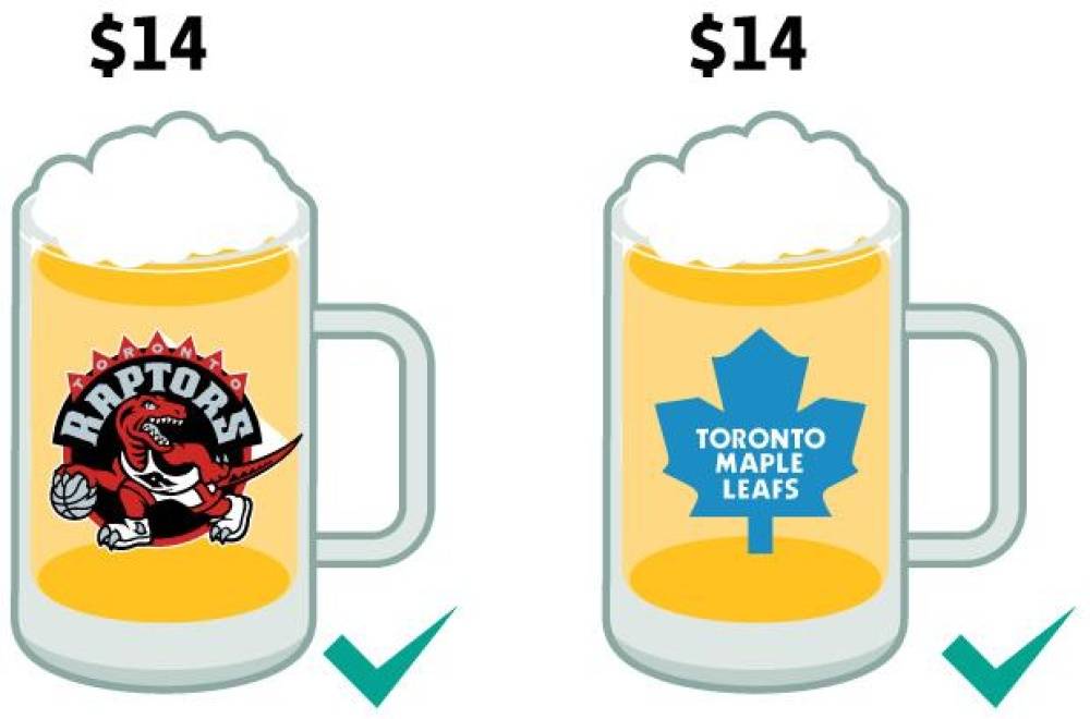 At a Raptors game, the novice fan chants “Pizza, Pizza” in anticipation of a free, low-quality slice if the home team wins and scores 100 points or more. If the Raptors win but score fewer than 100 points, fan boos.
