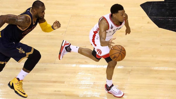 Kyle Lowry #7 of the Toronto Raptors handles the ball in the fourth quarter against LeBron James #23 of the Cleveland Cavaliers in game four of the Eastern Conference Finals during the 2016 NBA Playoffs at the Air Canada Centre on May 23, 2016 in Toronto, Ontario, Canada.Getty Images